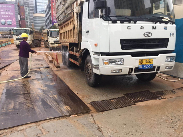 三、設(shè)置車輛沖洗設(shè)施,安排專人對(duì)出場(chǎng)車輛進(jìn)行沖洗,防止污染市政道路。