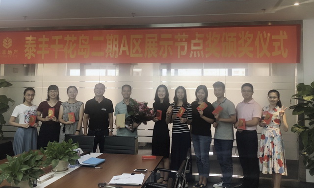 2018年7月10日上午10:30,泰豐千花島二期A區(qū)展示區(qū)節(jié)點(diǎn)獎頒獎儀式在華威會議室舉行。本次頒獎儀式由項(xiàng)目總郭勝偉總主持,各部門負(fù)責(zé)人及員工代表接受了頒獎。